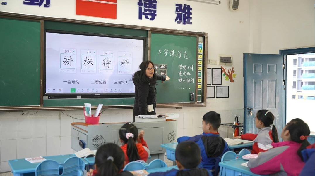 上午8点30分,随着第一声上课铃声响起,三年级113班的老师夏永红用“守株待兔”的成语故事,将刚坐到教室里的孩子们的注意力迅速集中到学习中。三年级107班的课堂上的教学内容也令人耳目一新。综合实践课老师高娜组织了一场茶饮品牌“茶颜悦色x”出现网红现象的分析讨论课。教学楼里,孩子们在生动、快乐的课堂上学习知识。操场上,小朋友们则“动如脱兔”。在吴小豪老师的带领下,二年级129班的孩子们乖乖做完热身拉伸运动,随后分组进行素质趣味小游戏。