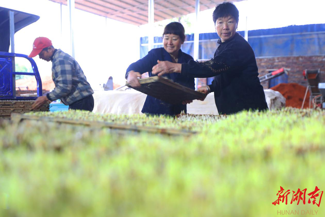 “我们这是全市乃至全省最早出秧苗的,也可以最早插秧。”郭四清告诉记者,之所以能如此早的开始春耕备耕工作,得益于“衡湘香米”这个秧苗品种,这是该村2021年新引进的秧苗品种,比常规品种要早一个半月,耐寒性很强,早稻一般在3月初种植,6月份收割后就可以开始种晚稻,种的晚稻可以在9月底收割,收获时间大大提前。