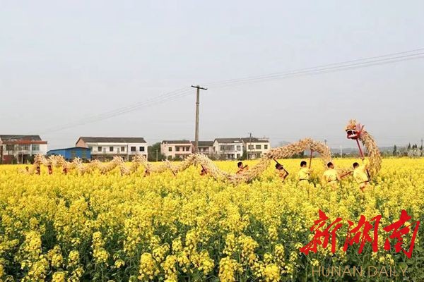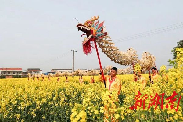 省级非物质文化遗产代表性传承人肖求进说,九市稻草龙始于清代康熙年间,每年腊八后,台源镇台九村召集男女老少,用上好的稻草精心扎成稻草龙,龙腾盛世迎新春,表达劳动人民祈求国泰民安、风调雨顺、五谷丰登、人兴财旺的美好愿望。尤为出彩的是,龙舞油菜花田埂,一条巨龙游弋在金黄的画卷里,相映生辉,叹为观止。