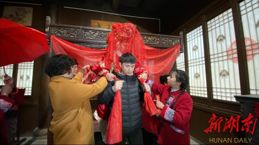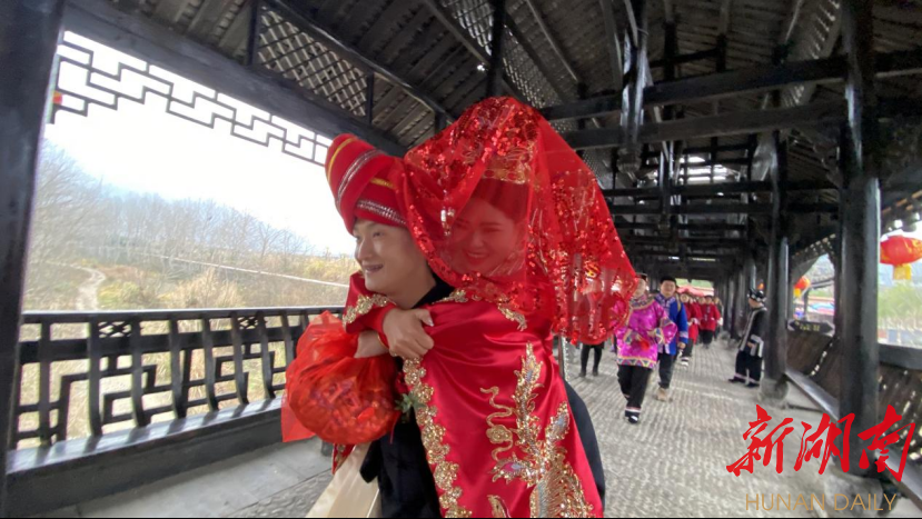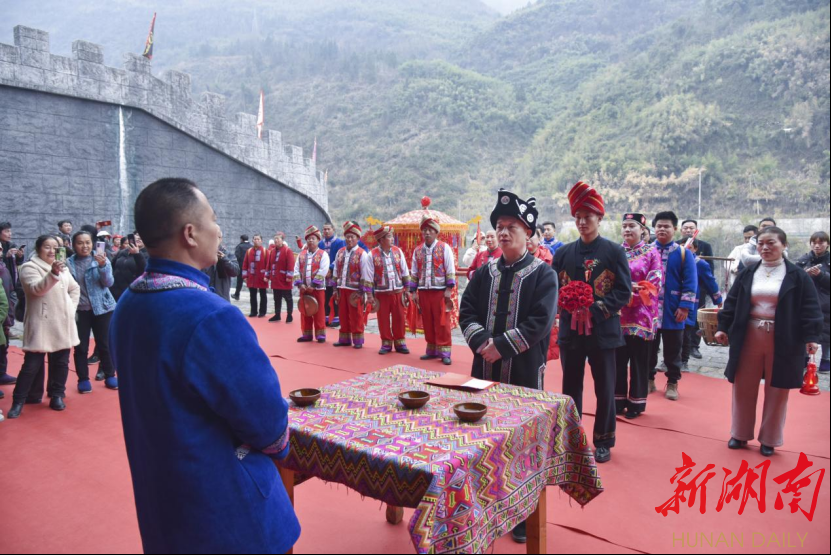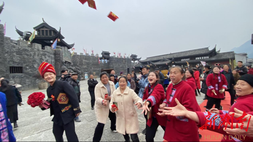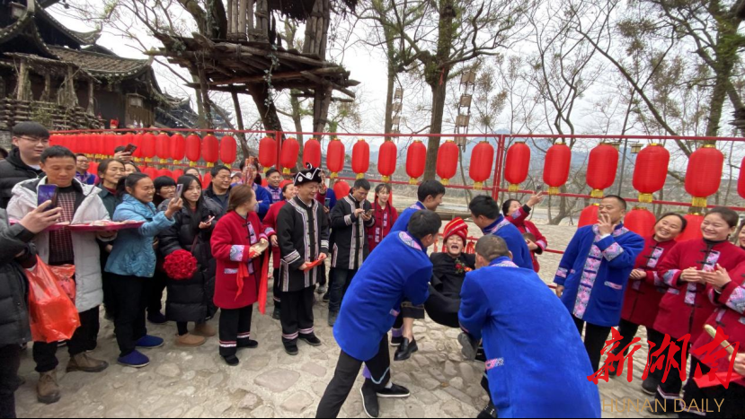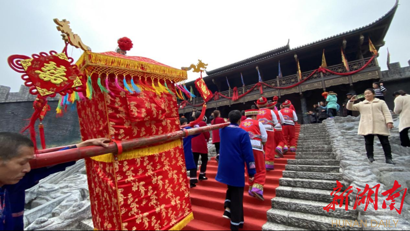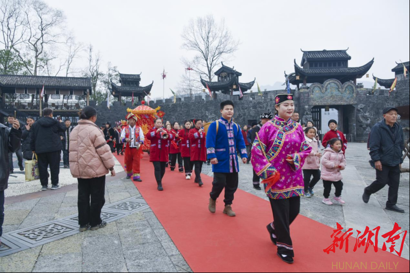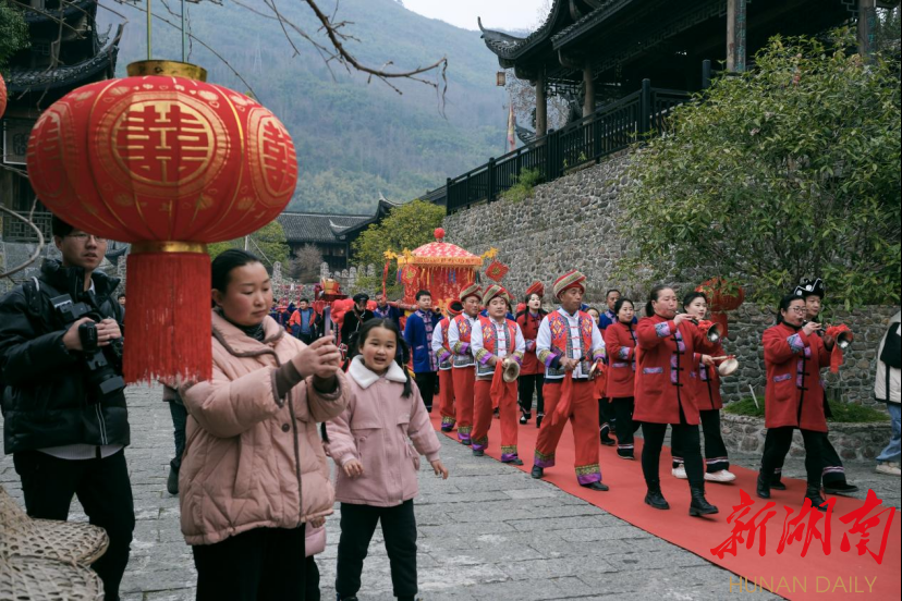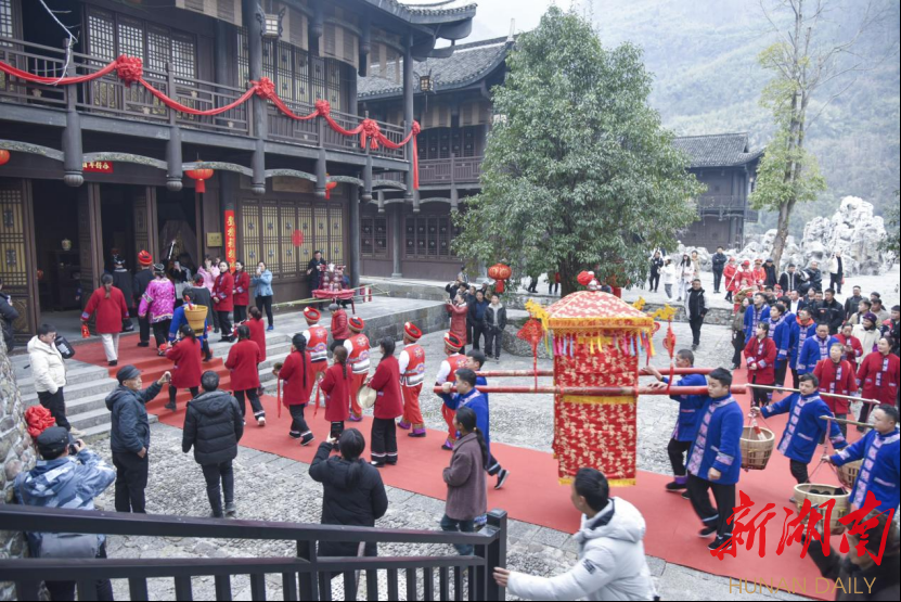 “增强民族自信,传承民族文化。景区必须要打好‘文化牌’,以民族文化的挖掘和利用创新,来增强景区内涵底蕴,激发景区的市场活力。”龙山县惹巴拉景区董事长刘春红介绍,该景区是龙山县以“沉浸式旅游+体验”模式打造的土家探源之旅的核心景区,春节以来该景区也迅速回暖,期间共接待游客超过5万人次,景区也盯紧文旅产业这一“攀升期”,充分利用当地特色民俗和景区优势资源,推出了承办土家族传统婚俗项目。