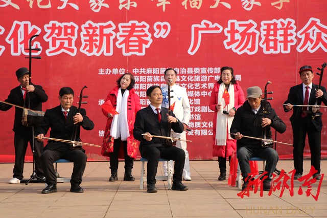 湖南日报·新湖南客户端1月25日讯(通讯员 张杰 记者 卢嘉俊)1月24日,大年初三,麻阳苗族自治县“文化贺新春”广场群众文艺活动好戏连台,原生态花灯戏、多样舞蹈、器乐表演等群众喜闻乐见的文艺连番上演,麻阳上万群众乐享“大餐”。