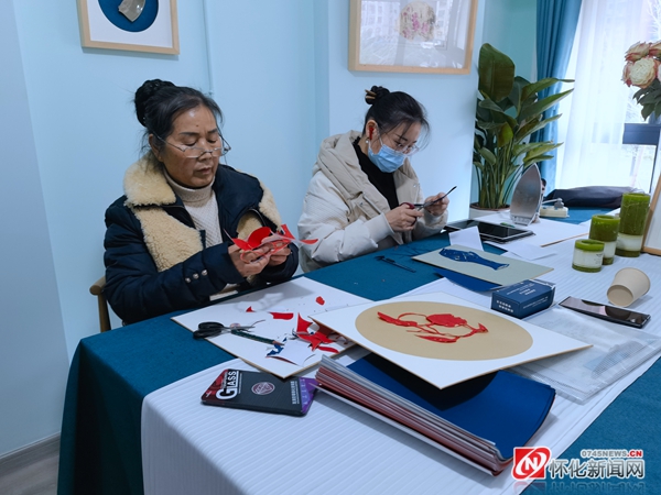 一手持着剪刀,一手将红纸与画着兔子的白纸叠在一起,耐心地沿着兔子的轮廓,一点一点将兔子的耳朵、嘴巴、胡须修剪出来。不一会儿,一只栩栩如生、灵动活泼的小兔子就跃然于纸上……2月15日,在怀化市象形学校,结束了授课的袁超美放下剪刀,活动了一下手腕。“剪纸是中国民俗文化的一个重要组成部分,蕴含着丰富的文化内涵。而我们舞水剪纸是本地匠人流传下来的一门手艺,主要以花鸟鱼虫为创作主题。近几年,我尝试借鉴国画白描的创作手法进行改良,使它更贴近现代人的审美。”说起自己如何迷上剪纸,袁超美给记者讲述了她与剪纸的故事。