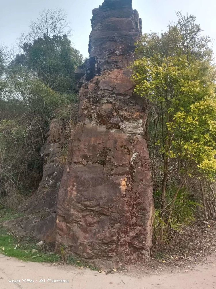 沿着干净整洁的村道蜿蜒前行,在湘潭县易俗河镇靠近株洲的石壁村,会遇见一块壁立如削的大石块。黛色的石体掩映在苍翠的树荫里,又让它多了一丝神秘。晴空万里,苍穹之上蓝天白云格外耀眼,各种色彩相互呼应着,远看去真是一道独特的风景。