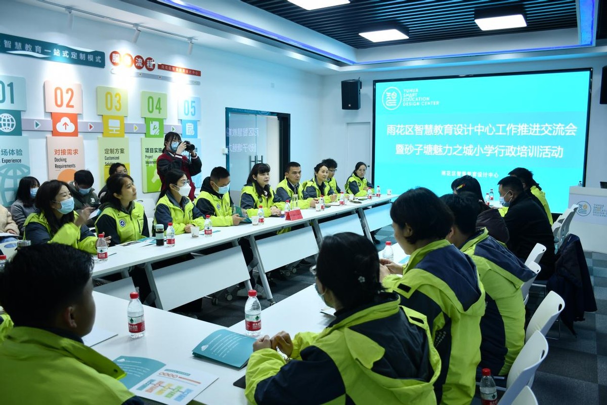 新湖南客户端3月29日讯(通讯员 李卓 何溅莲 杨勇华 苏斌)为助推学校智慧教育的建设与发展,进一步提升教师教育信息化素养,近日砂子塘魅力之城小学党支部书记、校长丁君囡率领学校全体行政、阳光管理轮训成员及杨勇华信息技术与学科融合名师工作室全体成员来到雨花区智慧教育设计中心,开展智慧教育专题培训活动。雨花区教育局信息中心主任李良、党支部书记姚宇德出席此次活动。