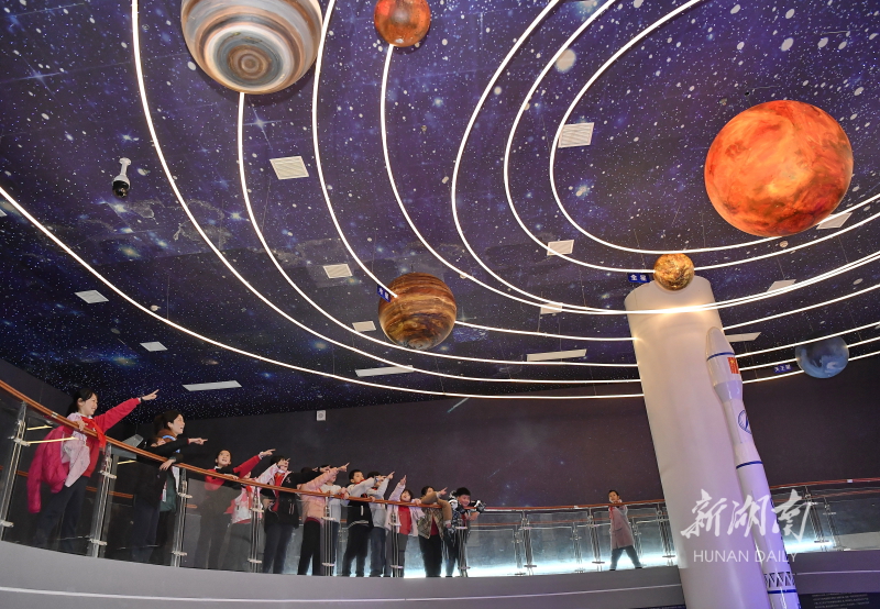 3月23日,50名小学生在参观长沙气象科普馆。当天是世界气象日,长沙市气象局在长沙国家综合气象观测试验基地开展系列科普活动,让孩子们探究和感受气象奥秘。湖南日报全媒体记者 童迪 肖秀芬 通讯员 王金华 摄影报道(一审:马俊达 二审:王立三 三审:刘建光)
