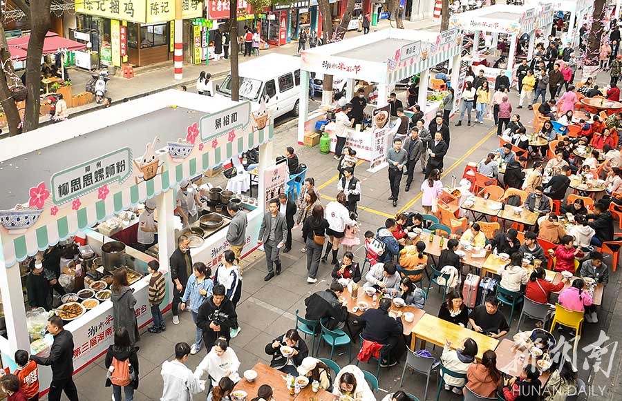 3月12日,众多市民在品尝米粉。当天,湖南米粉节暨第三届湖南米粉大擂台在长沙市芙蓉区湖南米粉街开启,现场20多家米粉品牌展卖特色米粉及小吃,开展技能大赛,吸引了众多市民前来品尝、打卡。 湖南日报全媒体记者 傅聪 摄