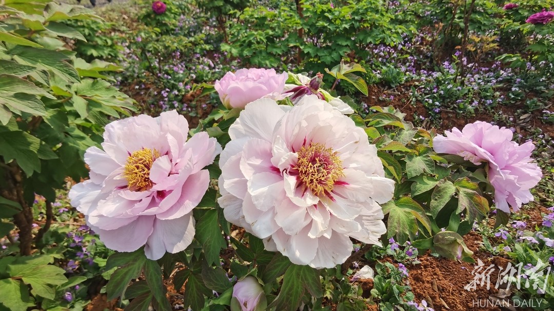湖南日报·新湖南客户端3月21日讯(通讯员 廖诗卉 何禹军)阳春三月,春分时节,桂阳蓉城大地万紫千红,在桂阳县泗洲山国家石漠公园内,舂陵江镇定心村3万余株牡丹盛开,一袭花香醒蓉城,艳冠群芳。游客们慕名而来,一睹“牡丹仙子”芳容。
