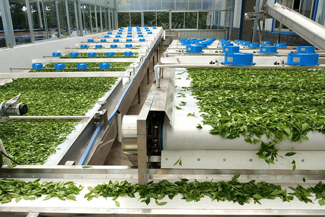 伴随着绵绵春雨,我们走进皇妃碣滩茶园的生产车间。加工厂里,碧绿的鲜叶在机器里翻滚,散发出淡淡的清香。这套全自动机械化的茶叶生产设备,每一个零件都来之不易,每一个流程,对于皇妃碣滩的茶人们来说都如数家珍。
