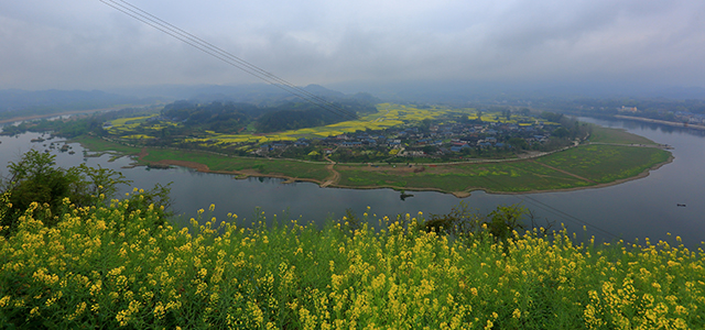 2023年三八妇女节,洪江市红色文化教育基地一一沅城古村千亩油菜花盛开,阳光明媚,春风拂面,吸引了不少自驾乡村游客。一群汉服姑娘与花相映成趣,如画如诗。