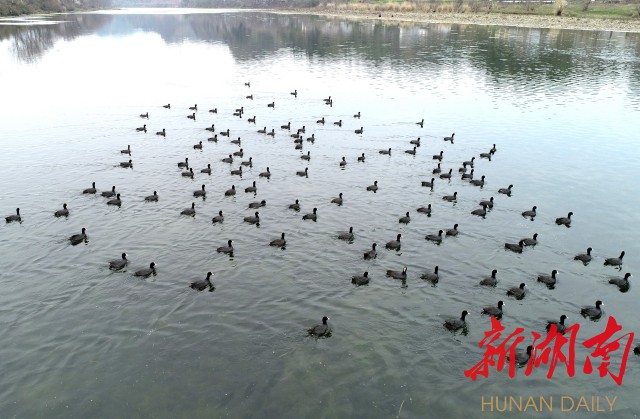 湖南日报·新湖南客户端3月6日讯(通讯员 张杰)你听说过“鸡”在水上飞吗?在麻阳苗族自治县锦江河段,就来了100多只、从外地飞来的“鸡”。不过,这可不是一般的鸡,它们可是国家二级保护动物,名字叫——白骨顶鸡。