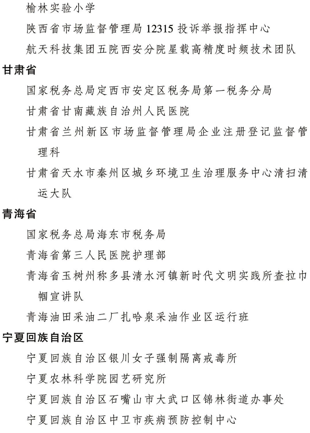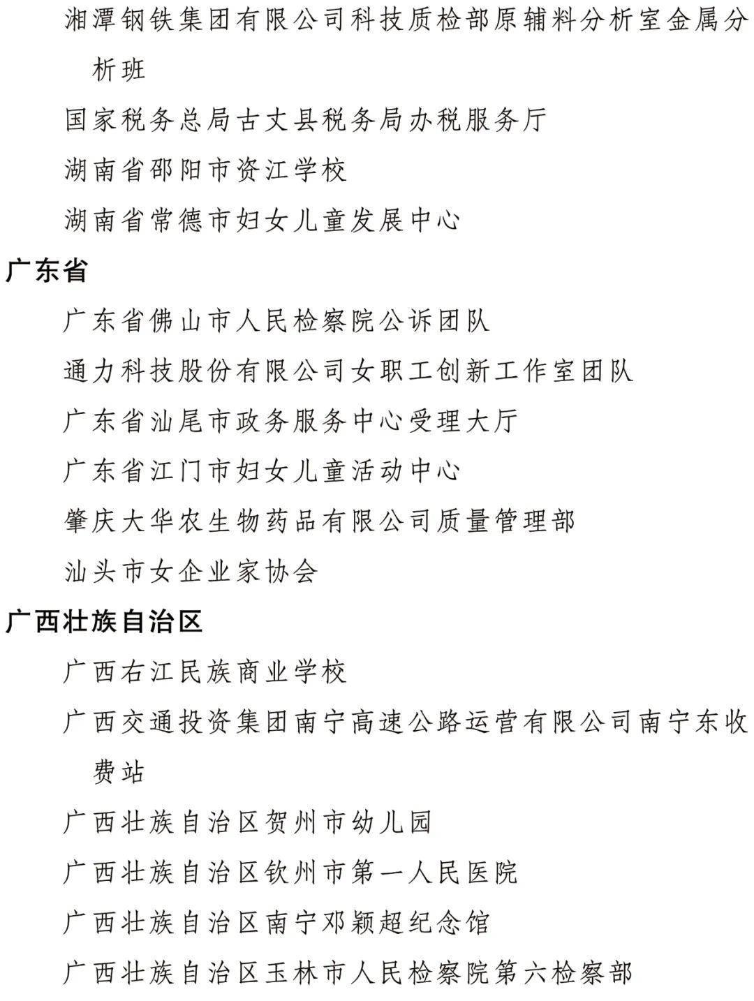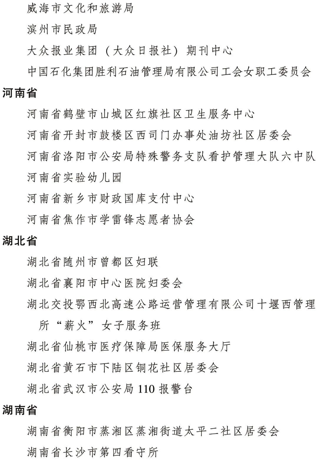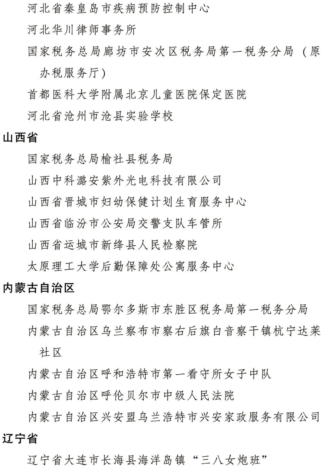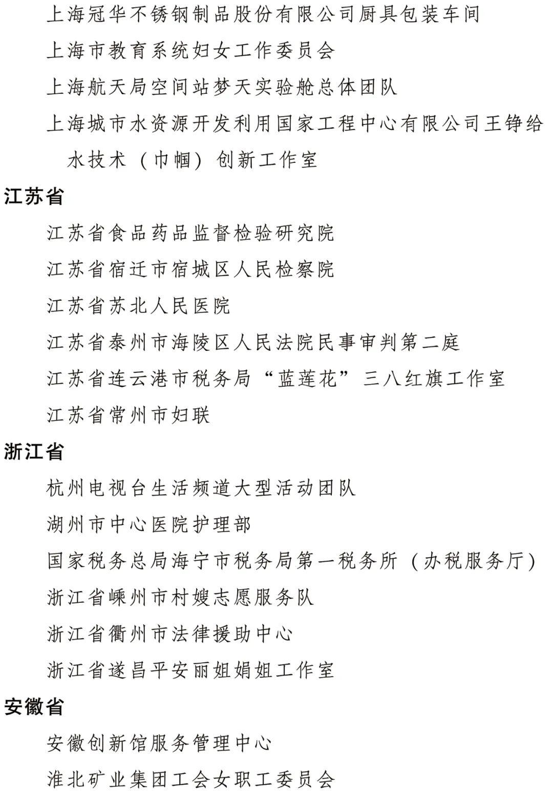 全国三八红旗集体名单