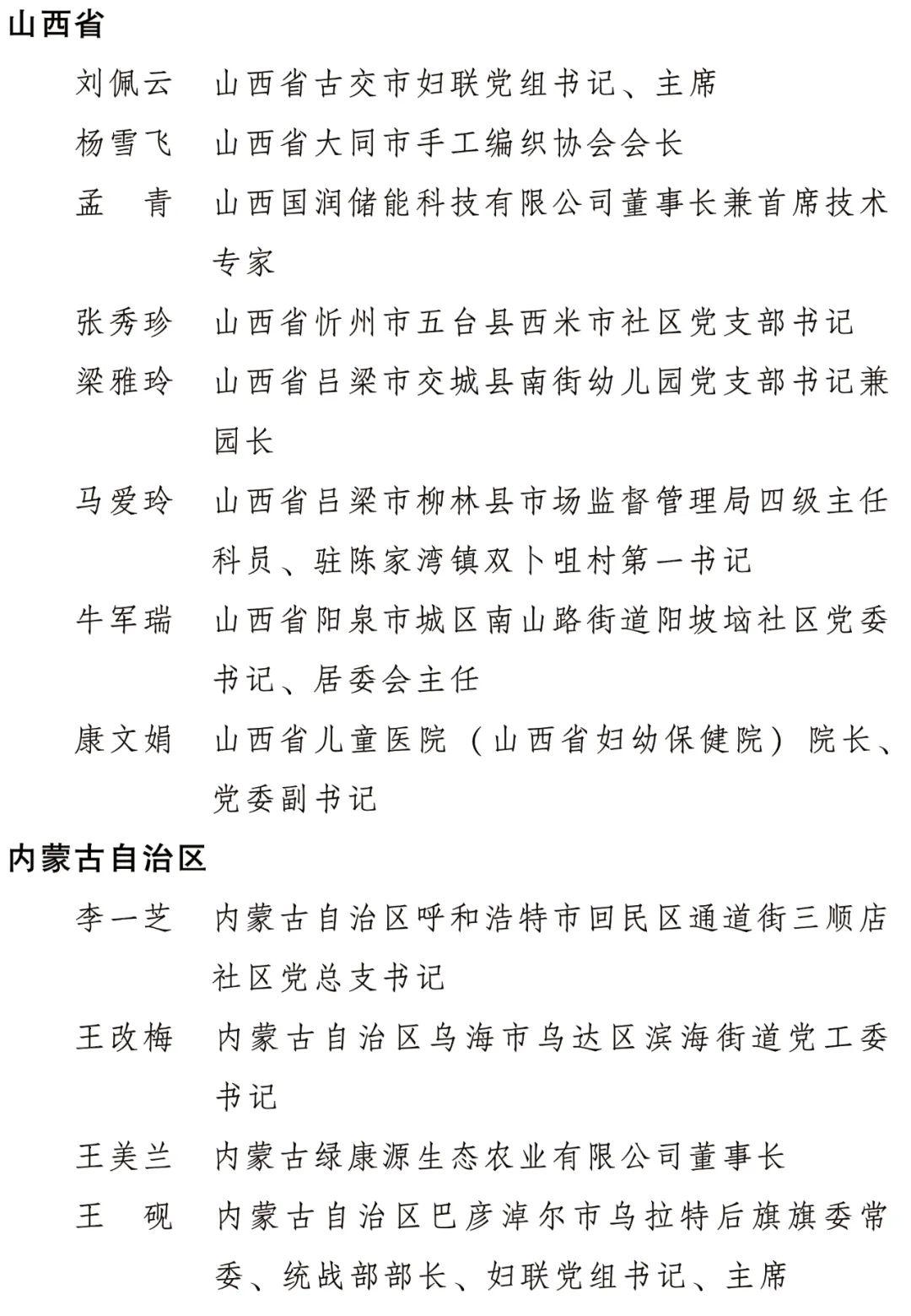 为表彰先进、树立榜样,进一步引领和激励广大妇女坚定不移听党话、跟党奋进新征程,豪情满怀、意气风发投入推进中国式现代化的伟大实践,日前,全国妇联决定,授予钱素云等10人全国三八红旗手标兵称号,授予蔡凤辉等298人全国三八红旗手称号,授予北京高校思想政治理论课高精尖创新中心等199个单位全国三八红旗集体称号。