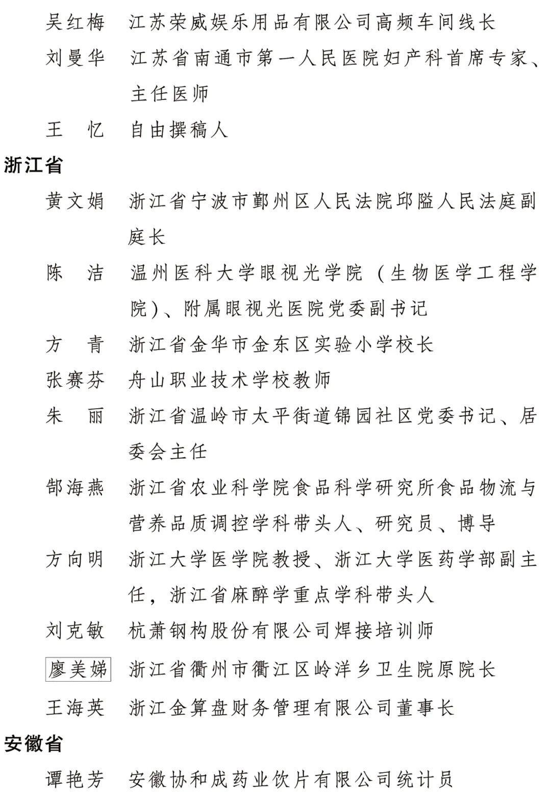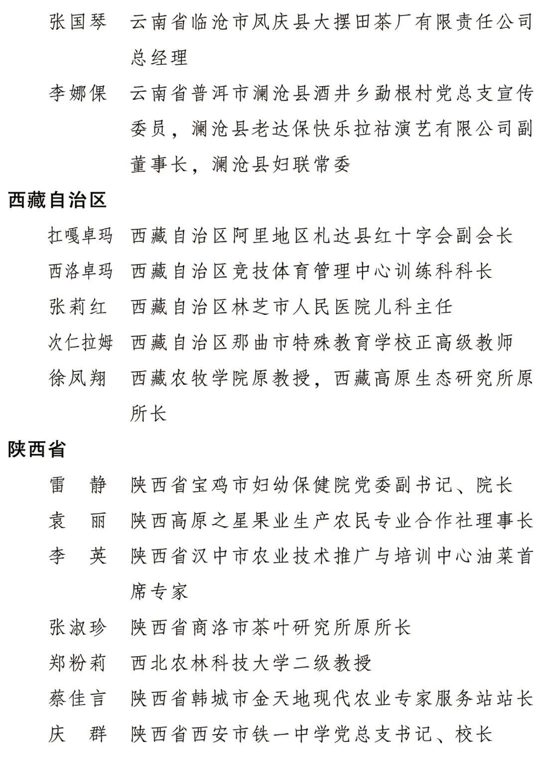 全国三八红旗手名单