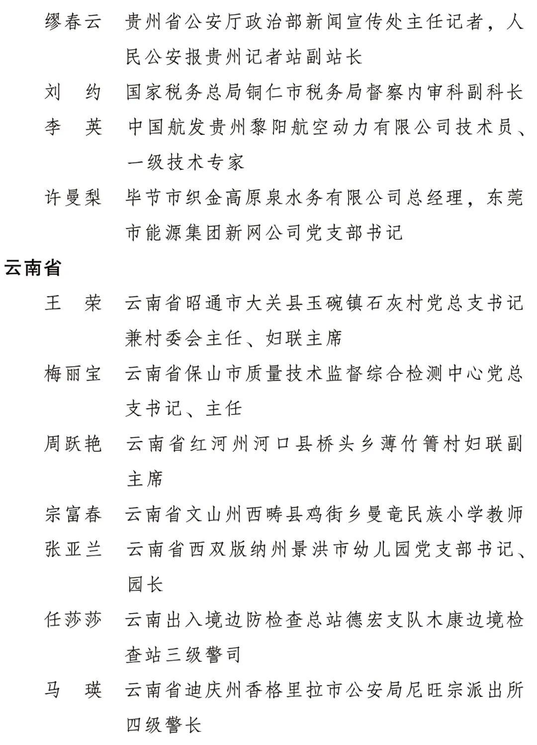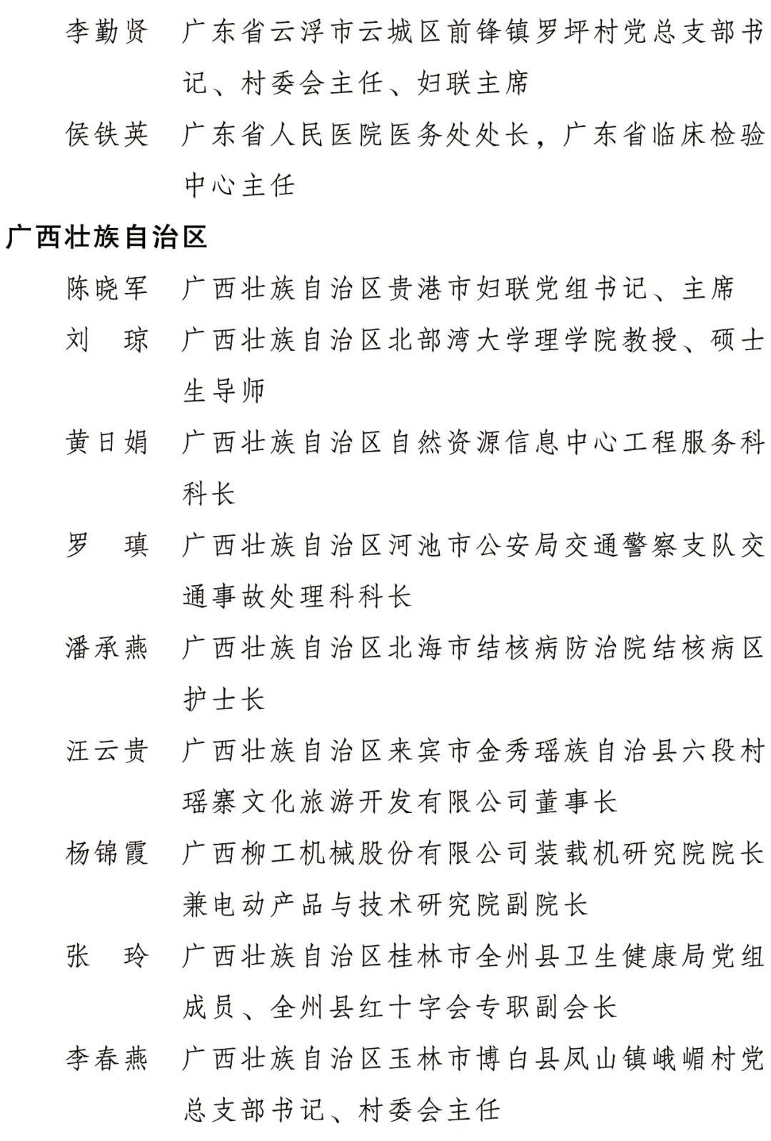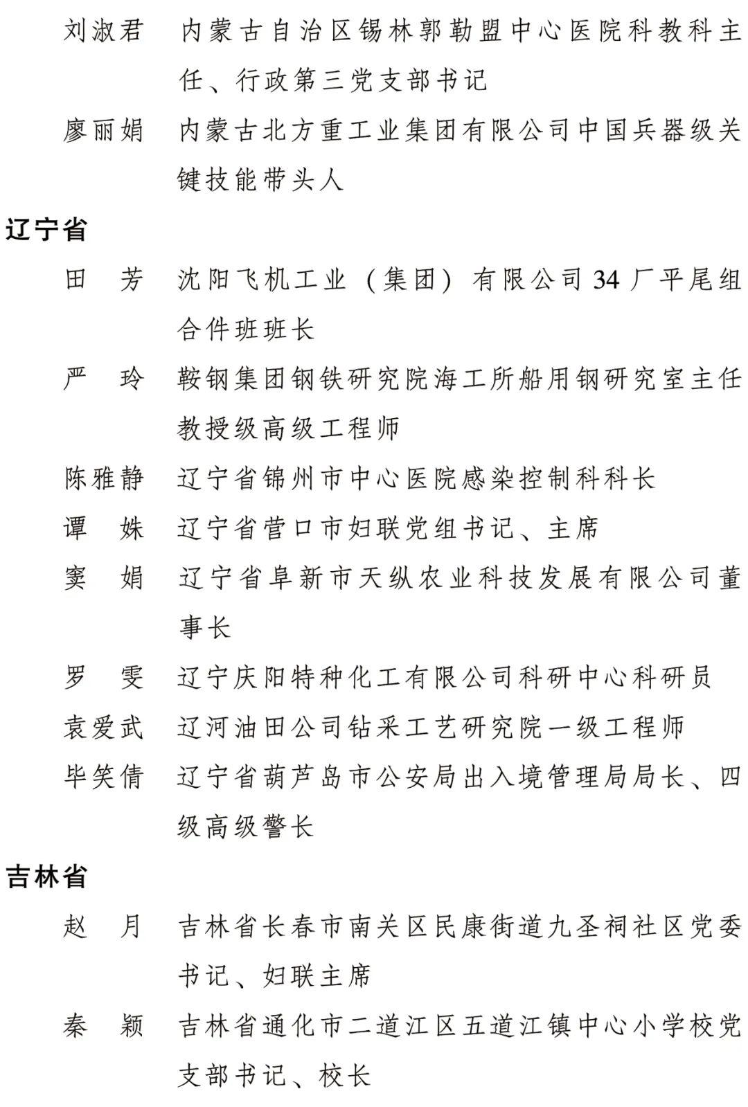全国三八红旗手标兵名单