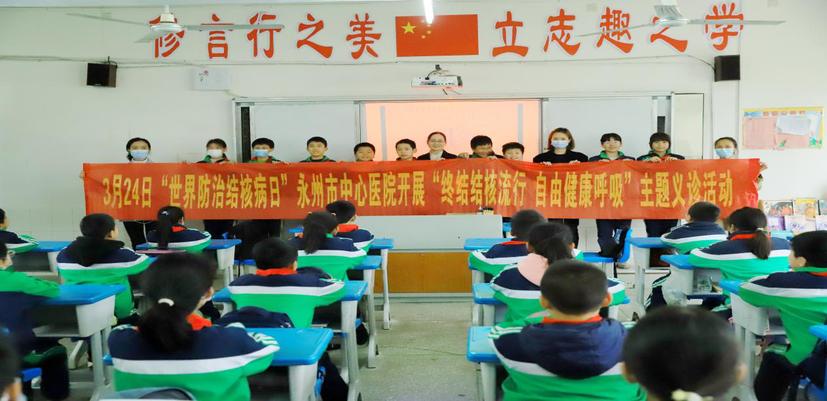 湖南日报·新湖南客户端3月24日讯(通讯员 宋玲艳 熊娟)3月24日是第28个世界结核日,为了在学校中普及结核病的防治知识,提高学生结核病的知识知晓率,永州市中心医院感染科医护专家走进荷叶塘学校,开展了“你我共同努力,终结结核流行”为主题的健康促进活动。