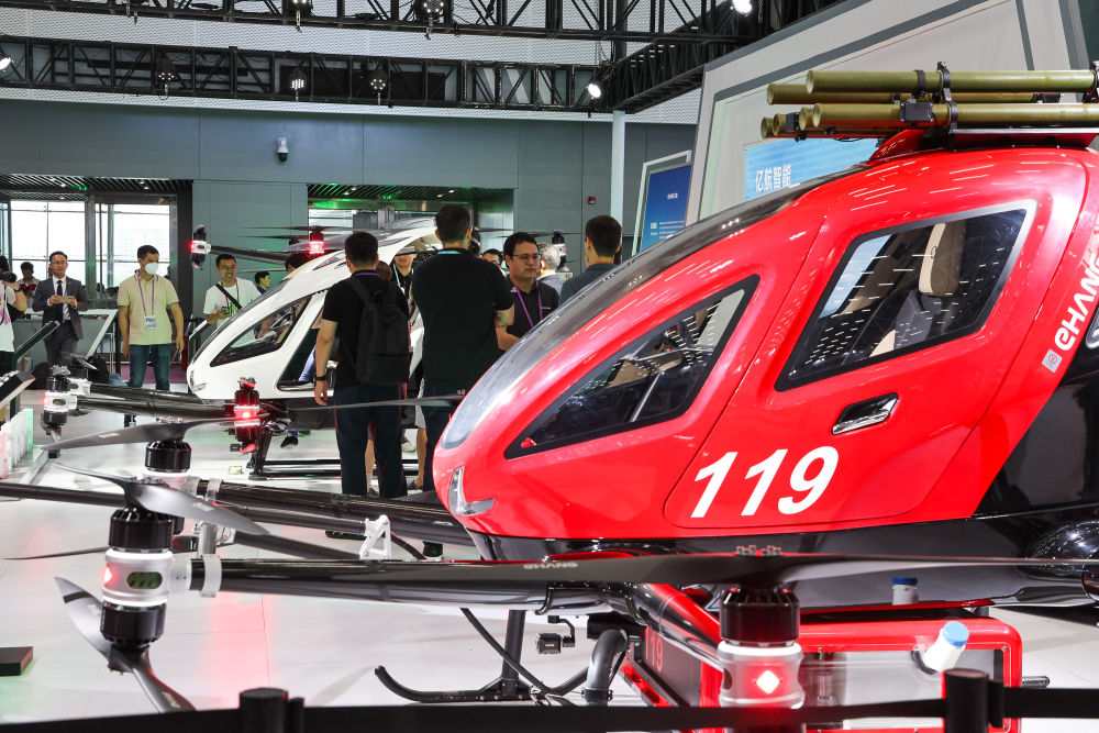 这是广交会新设置的新能源及智能网联汽车展区展示的亿航载人和运输无人机(4月15日摄)。新华社记者 刘大伟 摄