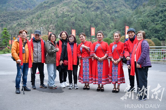 上午9点30分左右,景区举行了欢迎仪式,只见身着土家服饰的工作人员唱起了“土家拦门歌”,用最高礼仪热情迎接远道而来的客人,并为每位游客送上暖心礼物,现场欢声笑语不断。