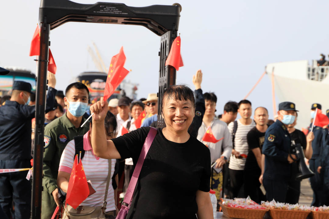 “祖国万岁!祖国万岁!”现场人群不约而同激动地挥舞起手中的五星红旗,不少刚从战乱区撤离的人们流下了激动的泪水。