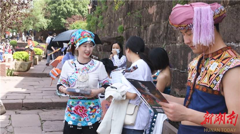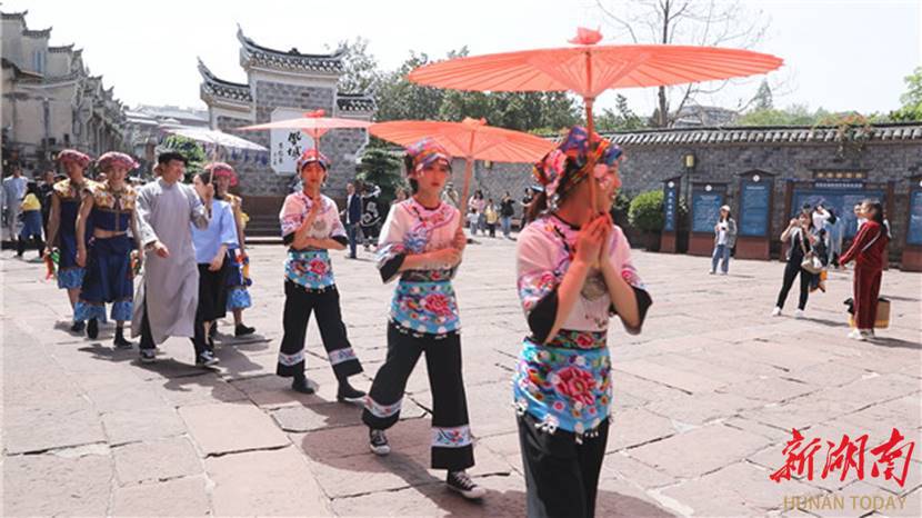 “五一”假期,湘西土家族苗族自治州凤凰古城景区精心策划民俗舞蹈大巡演活动。假期第一天,凤凰古城各景点人气十足,来自全国各地的游客汇聚于此,尽情享受惬意的古城时光。