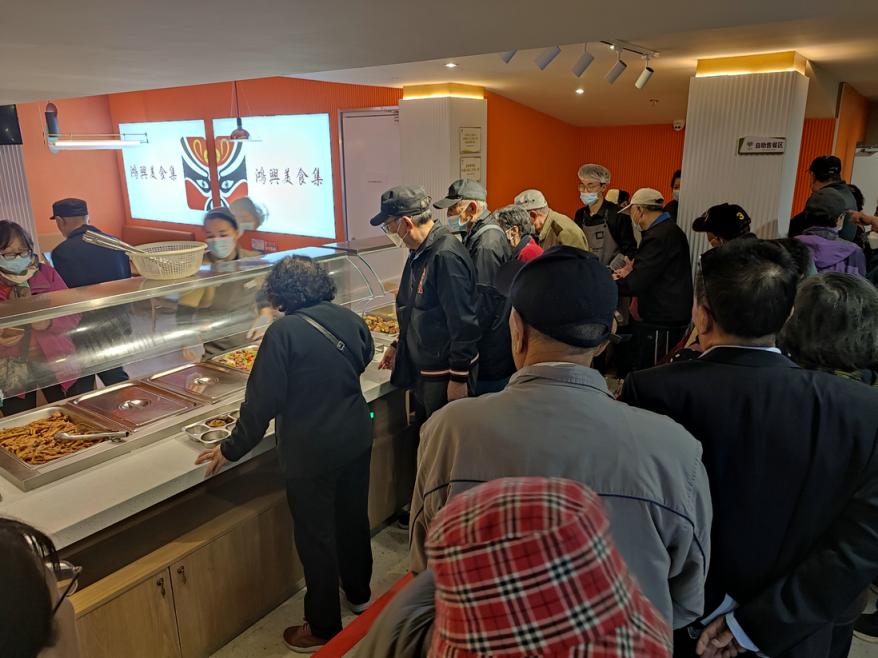 时间刚过中午11点,长安商场地下一层的社区食堂就排起了长队。队伍里有很多老年人——这处社区食堂,同时也是养老餐集配中心,还挂着“西城区父母食堂”的标牌。