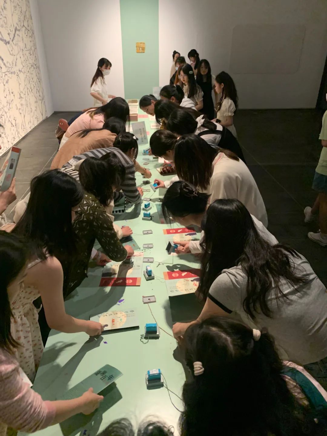 齐白石精品展一个鲜明特点是,设立700多平米的公教体验区,引导大众身临其境地感受齐白石视角下的家山与远游、草木与鸣虫。其活动包括:以志愿活动服务人。积极开展“馆长、策展人、艺术家、志愿者带你看展览”导览服务,带领观众驻足白石先生作品前,倾听不同视角下的解读,在欣赏佳作的同时了解展览背后的故事。展览期间,馆领导站在导览服务一线,为各类团队、嘉宾和公众讲解,每周至少2场,最多一周5场。以主题活动吸引人。与展览同步开展了10多个主题的公教活动,包含专题讲座、印章打卡、展厅涂鸦、拼图互动、纸伞和团扇绘制、名作临摹、汉服体验、吹塑版画、邮寄明信片等内容。如通过“奇幻‘膜’法 玩转色彩”主题活动,吸引观众探寻白石艺术宝藏,用奇幻“膜”法画一片繁花盛开。通过“意学白石 妙笔同‘绘’”主题活动,吸引观众用一席宣纸、几笔素墨,在似与不似之间感受齐白石艺术魅力。以团体活动聚集人。开展团体公教活动90余场次。与长沙理工大学等学校合作,开展高校留学生中英文艺术导览和中国绘画体验活动;与企业合作,联合中冶·公园1957美术馆举办“齐白石的艺术世界”临摹比赛活动;与地方合作,联合岳麓街道开展共建美丽街巷主题党日活动;与艺术机构合作,举行“回想:齐白石艺术及其日常书写”美育课堂活动。每日参与公教活动3000余人次,累计参与公教活动30万余人次。丰富多样的公教活动让大众与展览结下了不解之缘。