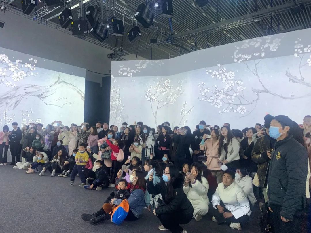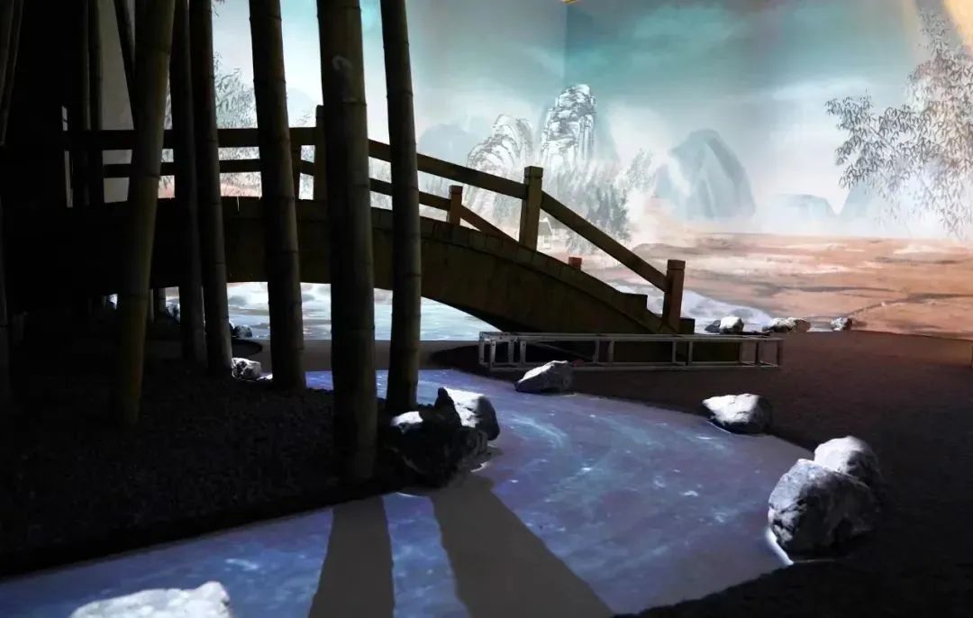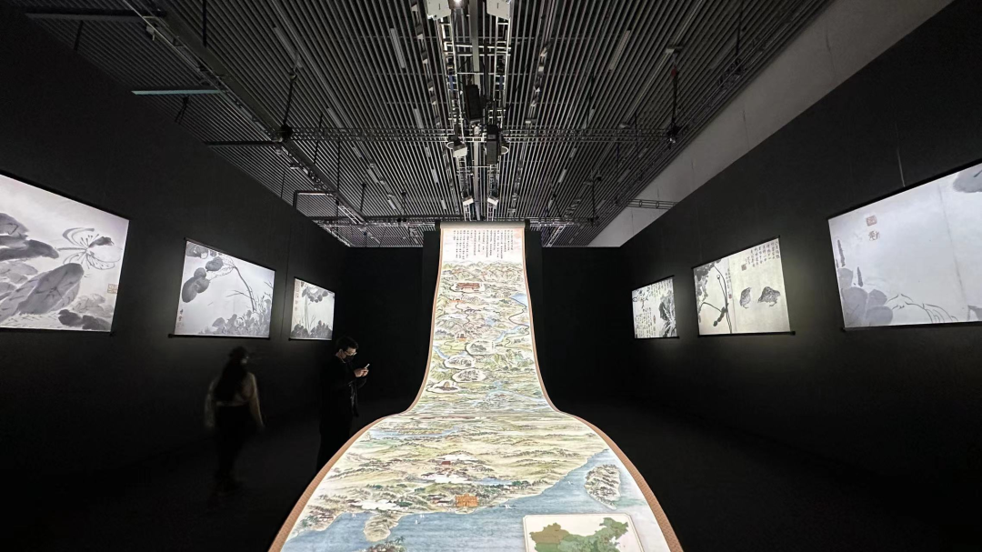 作为齐白石精品展的重要一环,“天趣画境——齐白石沉浸式数字光影艺术展”全球首次面向公众开放。这个“展中展”汇集数字投影、科技互动、虚拟现实、艺术装置等形式,通过科技与艺术的结合,产生了令人震撼的吸睛效果。通过场景再造吸睛。《万竹山居》展区用虚实结合的创意,还原竹林和雾森景观,打造图中竹林意象,呈现齐白石童年的视觉记忆。这是家山在画家心中的映射,更是齐白石梦中的理想家园。观众穿行于疏密有致的竹林,如临画境,不时听到竹林深处的流水声。通过历史再现吸睛。《五出五归》展区将卷轴造型的“画纸”铺满光影笔墨,生动描绘白石在不惑之年“五出五归”的写生经历,打造出一场时光的回溯。观众立于画卷前,看齐白石远游的路、入目的景、意临的画,感受师前人与师造化所带来的洗礼。通过艺术再生吸睛。《一花一世界》展区以大师笔下的花鸟鱼虫为蓝本进行数字转化,让“原作”活起来。如两只鸳鸯游动间不经意碰到了荷花茎,上面的鸟儿仿佛惊弓之鸟迅速飞走,惹得蜻蜓四处乱飞。观众在此可沉浸式看四季之间花木生长,听枝头篱下鸟啼虫鸣。用现代“形式美学”表现传统“中式画境”,为观众带来视觉的中式美学盛宴,反映科技高速发展的时代要求,符合年轻人的审美习惯,预示未来发展方向,是展览大量圈粉的法宝。观众赞叹:“被美到震撼,美到哭了!”