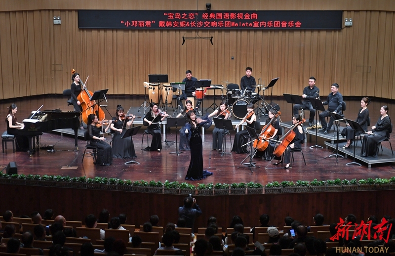 5月6日晚,“宝岛之恋”经典国语影视金曲专场音乐会在长沙音乐厅奏响。本场音乐会由中国青年歌手戴韩安妮携手长沙交响乐团Melete室内乐团共同演绎,通过多种不同乐器的组合碰撞,呈现了《月亮代表我的心》《在水一方》《小城故事》《甜蜜蜜》等一首首经典歌曲。湖南日报全媒体记者 徐行 通讯员 李佳蔚 摄影报道