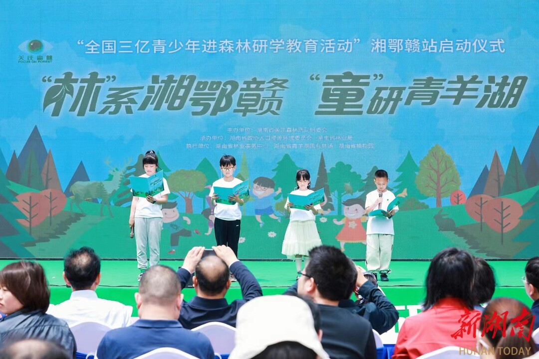 新湖南客户端5月13日讯(记者 陈龙)关注森林,关森更“嗨森”。5月13日上午,“林”系湘鄂赣 “童”研青羊湖——“全国三亿青少年进森林研学教育活动”(湘鄂赣站)启动仪式在青羊湖国有林场举行,并以此为契机组织开展了“政务公开主题日”活动,近40名来自湘鄂赣三省的青少年们一起关注森林、走进森林、拥抱绿色。国家林草局宣传中心副主任、全国关注森林活动执委会办公室副主任缪宏,省政协人口资源环境委员会主任、省关注森林活动组委会副主任陈仲伯,省绿化委员会副主任、省林业局党组书记、局长,省关注森林活动组委会副主任、执委会主任胡长清,省政协人口资源环境委员会分党组成员、驻会副主任,省关注森林活动组委会成员、执委会副主任廖瑞芳,省妇联副主席、省关注森林活动组委会成员卢妹香,团省委副书记、省关注森林活动组委会成员夏彬华,省政协人口资源环境委员会副主任、湖南商务职院院长李定珍,省委宣传部二级巡视员王军湘等领导出席活动。
