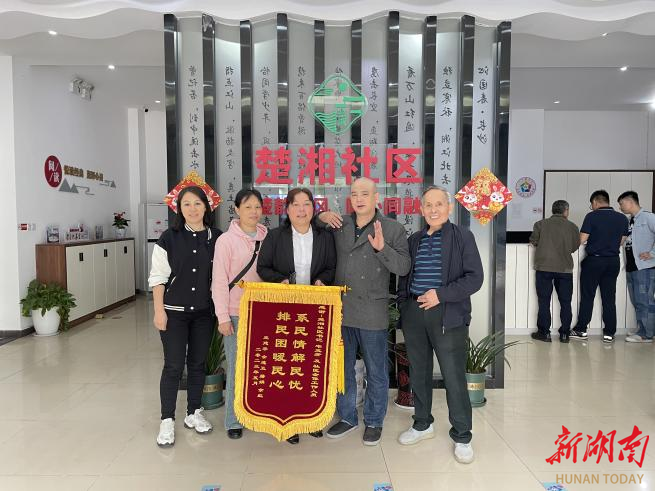 新湖南客户端5月24日讯(通讯员 邓梁)5月23日上午,长沙市天心区坡子街街道楚湘社区向家湾网格居民给楚湘社区党委赠送一面写有“系民情解民忧,排民困暖民心”的锦旗,对其在老旧小区改造工作中所做的努力表示感谢。