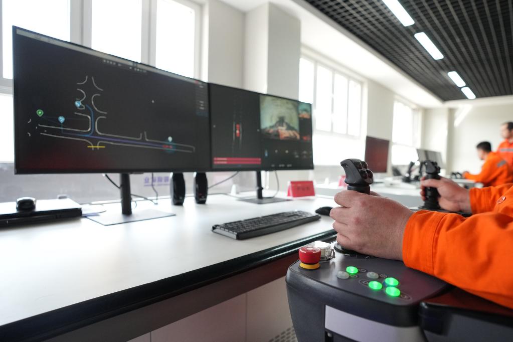 3月15日,鞍钢集团矿业公司眼前山铁矿工作人员在操作间控制井下设备作业。新华社记者潘昱龙 摄