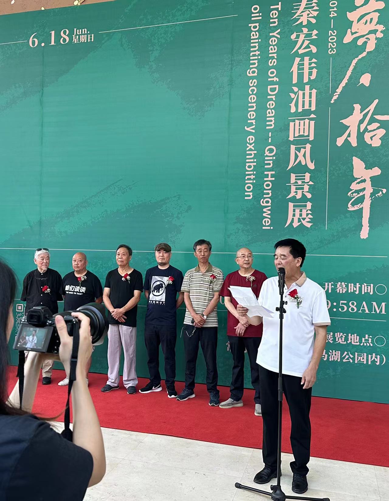 新湖南客户端6月12日讯(通讯员王勤)“梦·十年”秦宏伟油画风景展于6月9日上午在常德市文化馆开幕。本次展览由常德市文化旅游广电体育局;常德市文学艺术界联合会;湖南省油画学会主办。常德市文化馆;常德市美术家协会;常德市5060画家协会承办。秦·美术工作室;墨之园文化传播有限公司协办。参加开幕式的有湖南省著名油画家张月明,湖南省美术家协会副主席、湖南师大美术学院博士生导师段江华,湖南省油画学会主席,湖南师大美术学院博士生导师党朝阳,省直书画家协会油画艺委会主任覃小平,副主任黄慧华,李柯,常德市人大常委会原主任莫道宏,常德市政协副主席王鳌,常德市委原副厅级领导何广辉常德市文联党组书记蔡胜猛先生常德市文联主席杨莉,常德市文化旅游广电体育局副局长江勇,湖南文理学院美术学院原院长郭娓等300多人参加了开幕式。