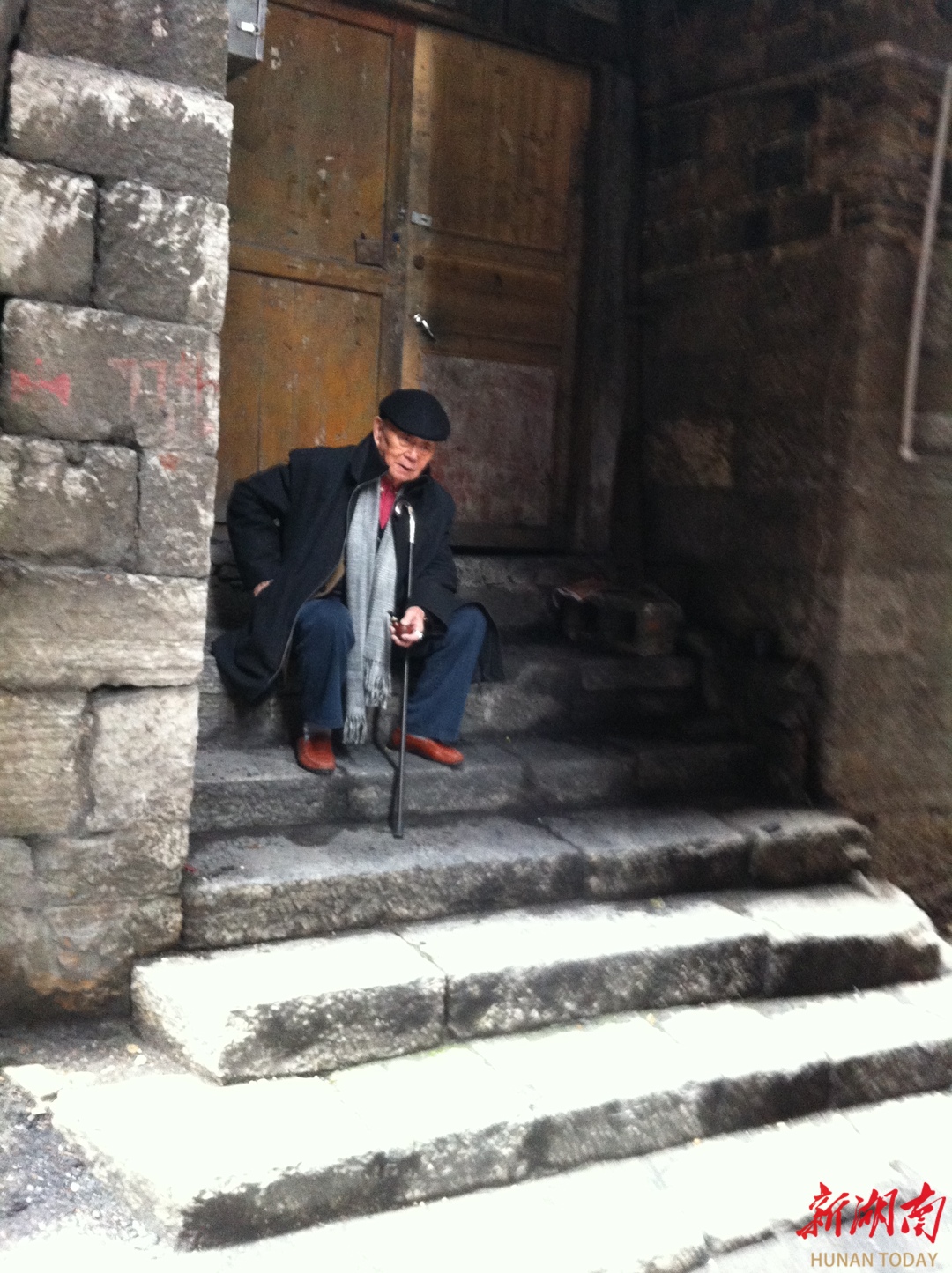 2013年夏,黄老来吉首看桥的那一天,我们陪他到了下河街,在现唯一留存下来的原“邓家大屋”大门外的一段老台阶,他走上台阶并在其上坐了好一阵子。