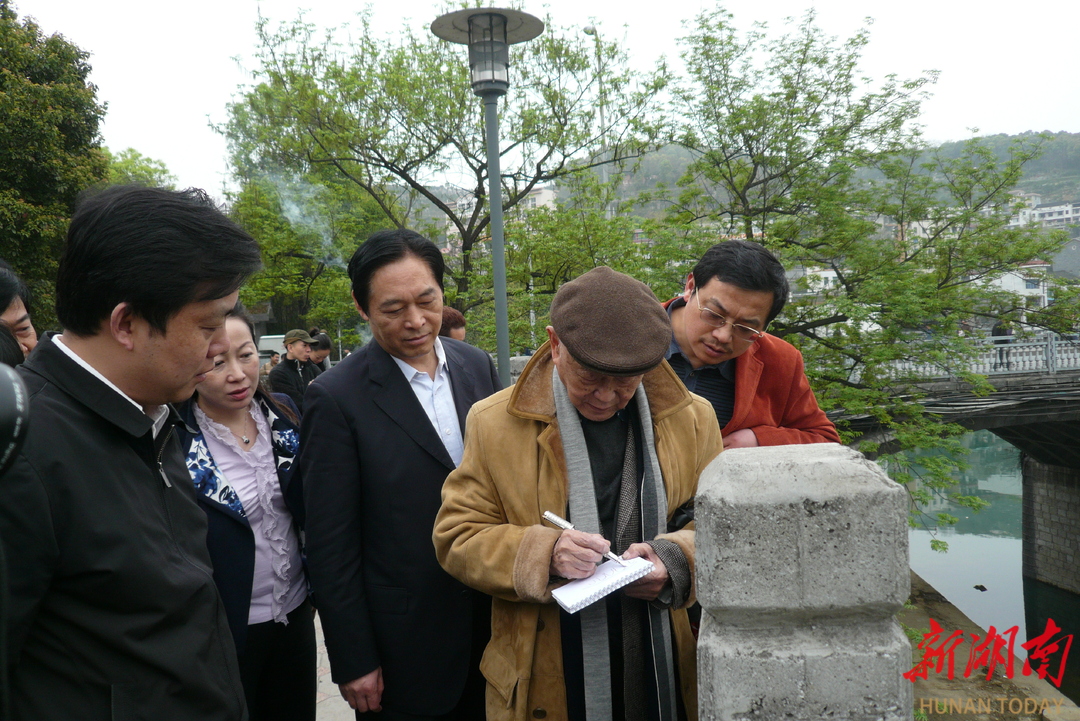 2011年4月11日,他参加完凤凰四桥开工仪式后两天,黄老在家人的陪同下,来到吉首峒河边“走玩”。