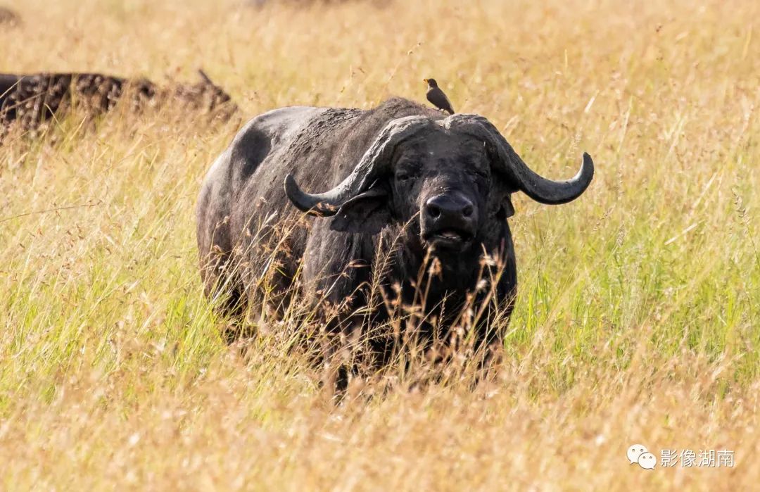非洲野水牛是非洲五霸之一,体型大,体重300-900公斤,四肢粗壮,头大角长,胸膛宽阔,十分凶悍,最强壮的公牛为族群领袖,统领牛群,通常以大阵容吓退凶猛的狮群,是非洲草原上最凶猛的动物之一。
