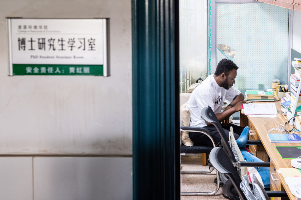 6月26日,尼克在湖南农业大学环境与生态学院博士研究生学习室自习。新华社记者 陈思汗 摄