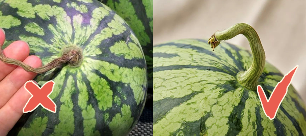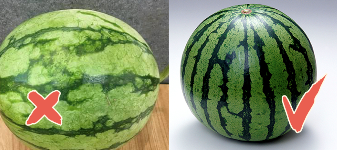 △ 挑选右侧这种纹路清晰、果形周正的西瓜