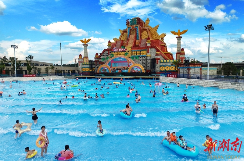 7月20日,衡阳市石鼓区,市民在玛雅海滩水公园戏水游玩。入伏以来,衡阳市连续多日发布高温预警,不少市民选择到水公园、游泳池等场所亲水游玩,戏水消暑乐享清凉。曹正平 李文恋 摄影报道