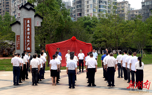湖南日报·新湖南客户端7月27日讯(通讯员 朱玉婷 陈巧云)7月25日,娄底市首个“廉洁文化示范基地”授牌仪式在娄底廉洁文化广场举行。市委常委、市纪委书记、市监委代理主任唐浩然出席并讲话。市纪委副书记、市监委副主任曾志彦宣读《关于命名娄底廉洁文化广场等6家单位(场馆)为娄底市廉洁文化示范基地的通知》,娄星区委常委、区纪委书记、区监委主任张学锋主持仪式,娄底廉洁文化广场建设管理单位大科街道党工委主要负责人作表态发言。
