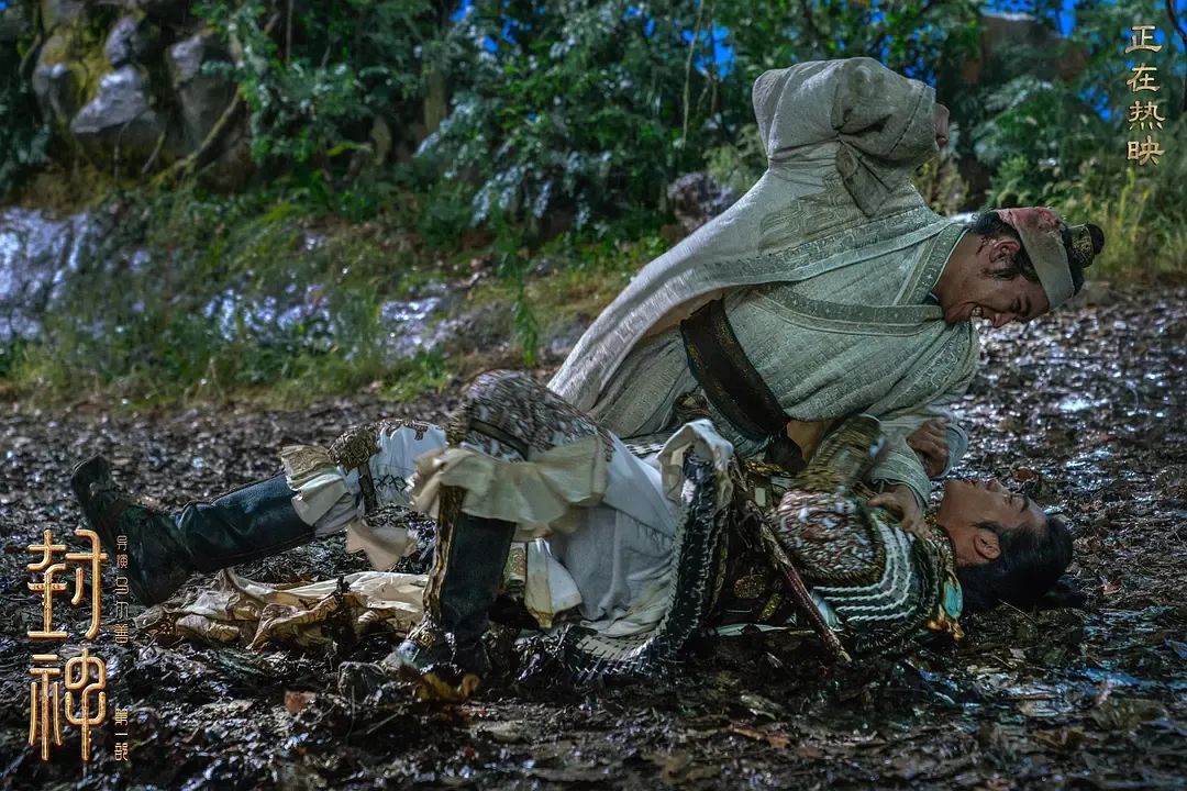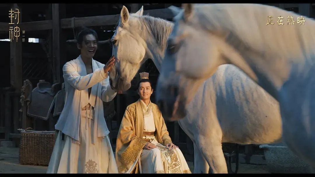 此片,写了一个暖男——伯邑考,质子姬发的同胞哥哥,他将两匹训练有素的千里马带给了弟弟,并最终因这两匹马救得了父亲与弟弟的性命。而纣王的暴虐仅用“剁尸烹杀”就可见冰山一角。伯邑考舍身换父,儿替父死尚不追述,天杀的殷寿还将他做成馅饼匡至其父口中,后告知,让西伯侯呑不得吐不得,生不成死不成,痛煞一生。接下来的戏,我们看到,无论如何战乱,马背上的父亲西伯侯都死死抱着那只食盒,生怕失手,谁都知道那是他的儿子,他是要带他回家。这一场戏是十分精彩的,表演极其细腻,饰演父亲的李雪健得知后一哆嗦,让我一下子跳到了京剧衰派老生的髯口戏,看到了写实与写意两种艺术手法下的类比,此处,他将进退两难的人生痛苦表现得淋漓尽致。戏中运用两匹好马将这一家三父子的情义交织在一起,成为自由奔跑在天边的隽永,细节雕刻十分感人。