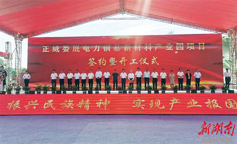 图为世界500强企业正威集团投资的娄底电力铜基新材料产业园签约暨开工仪式