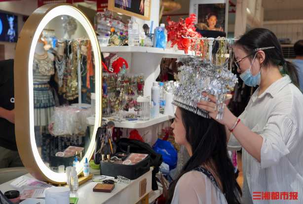 遇见翠翠旅拍店老板秦维告诉记者:“暑假是旅游高峰期,店里提供服装出租,化妆、拍摄、修图全套服务,每天至少接待200位客人,摄影师和化妆师根本忙不过来,顾客都需要提前3天预约。