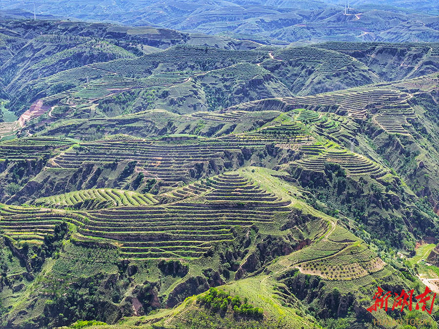 8月18日,陕西省清涧县石嘴驿镇,昔日沟壑纵横的黄土高原如今被改造成成片的果园。近年来,该镇规划建设山地苹果基地1万亩,形成了以山地苹果、黑毛土猪养殖、特色小杂粮种植和文化旅游为主的产业发展格局。 湖南日报全媒体记者 童迪 摄
