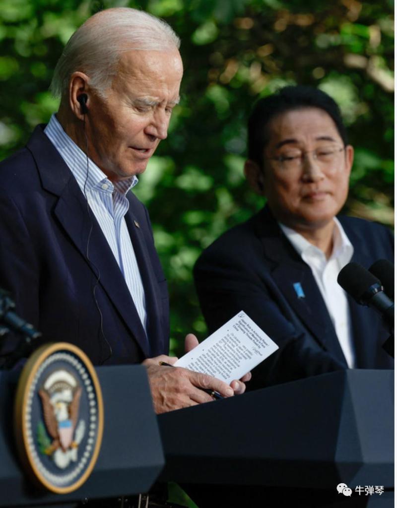 可能怕说错话,拜登这次记者会,基本是读稿的,以至于岸田忍不住伸长脖子,想先睹为快……