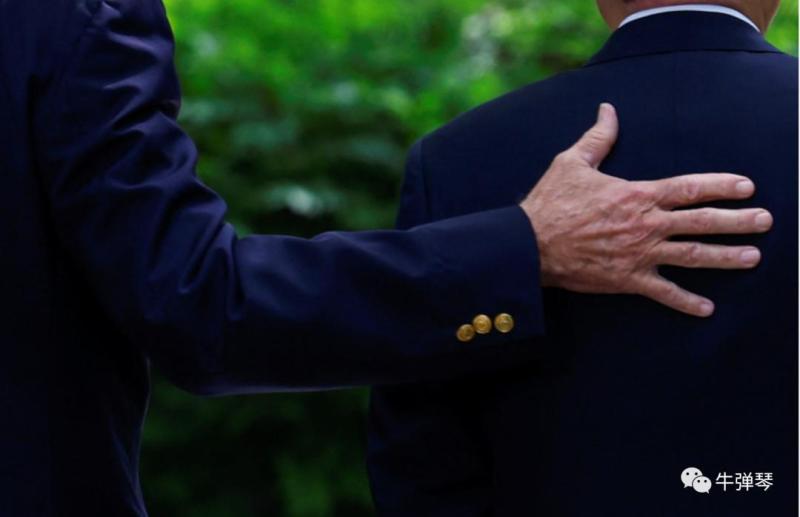 拜登的右手,就在岸田的背上,上摸下摸,左摸右摸,摸摸腰,摸摸颈,感觉格外喜欢。