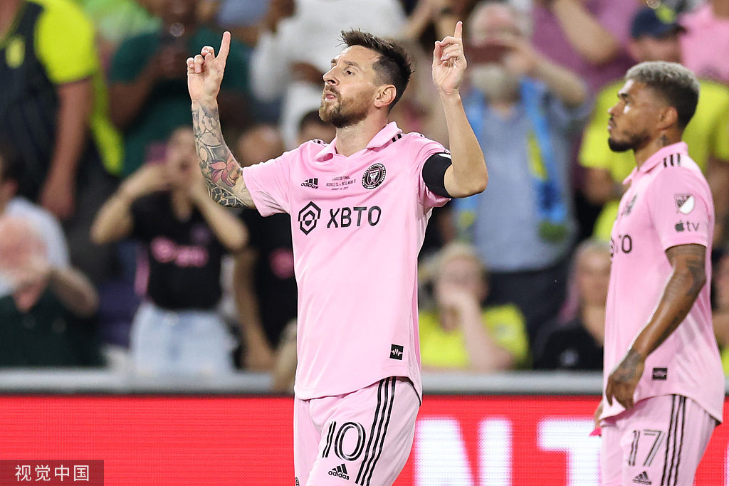 8月20日上午,北美联盟杯决赛,梅西身披迈阿密国际战袍首发出战,在比赛中他精彩弧线球破门,帮助迈阿密国际1-0领先纳什维尔。