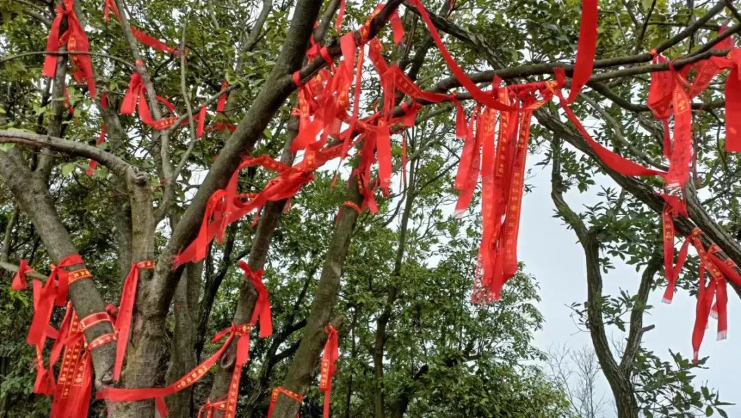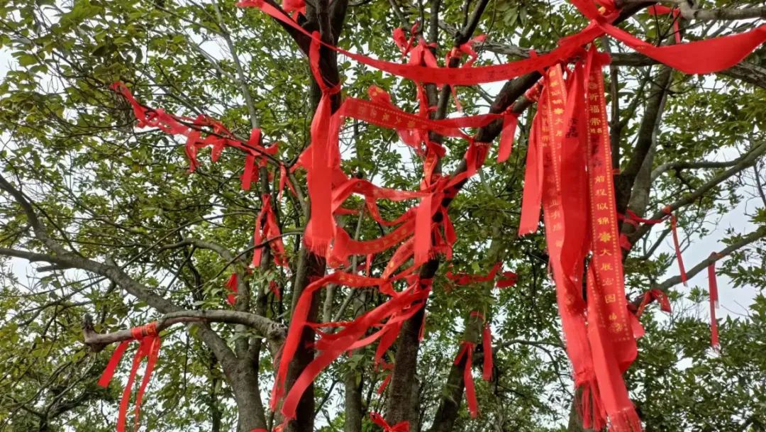 “那我也来祈个福。”一向视钱财官运如粪土的曾阿牛摘下一根布条,正想写字去许愿,但没找到笔。彭攀峰出了主意:用手指在红布上写上文字即可。曾阿牛一一照办,手写无字天书的祈福条毕恭毕敬地悬挂在树枝上。