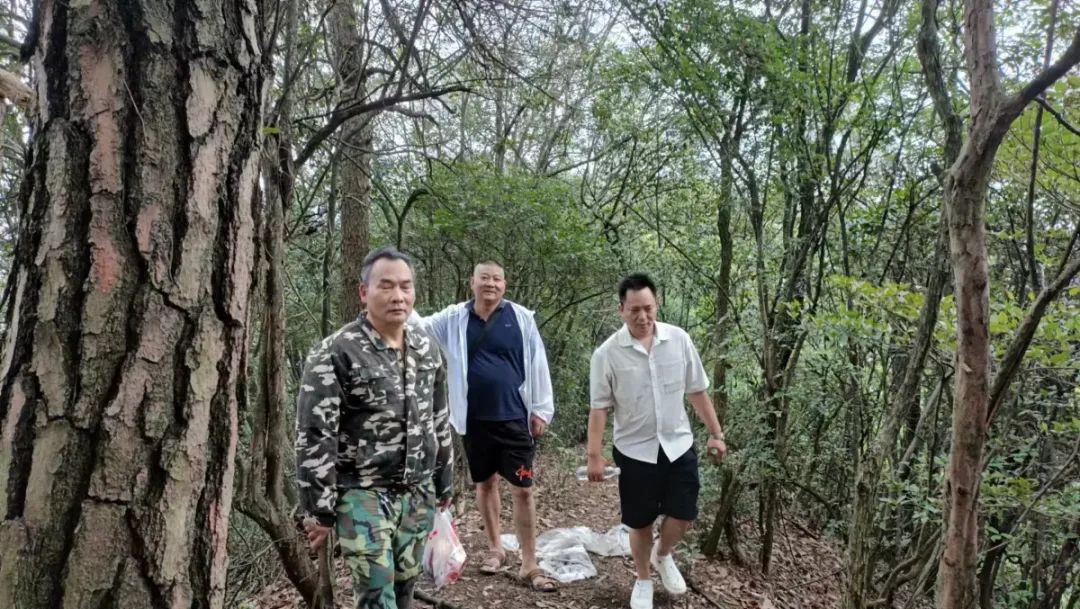 这段路,行人稀少,崎岖不平,荆棘塞途,步行艰难。在一处山坳,刘总指着山中一棵大松树,说:抗日战争时期,美国飞虎队飞行员与日本血战,因飞机受伤,在此坠毁,飞行员降落在这松树上。当时被山上采药的赖姓村民救起。