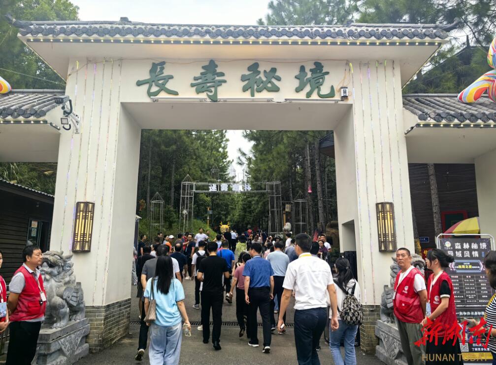 湖南日报·新湖南客户端8月29日讯(记者 张璇 颜石敦)今天下午,参加第二届岳阳市旅发大会的嘉宾们组成“百人踩线团”,到达3A级景区长寿秘境,饱览山水之美,品尝舌尖之味,感受长寿魅力。