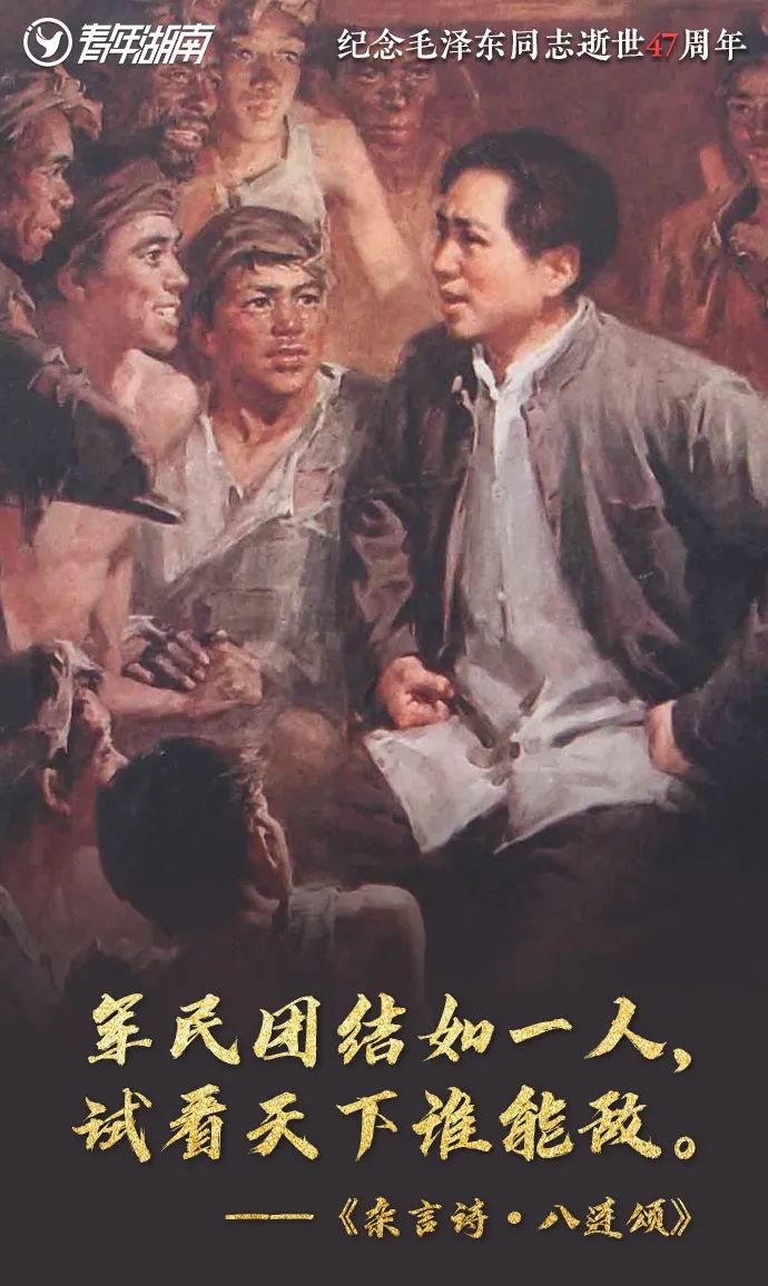 今天是九月九日,四十七年前的今天,伟大领袖毛泽东主席逝世,举国哀痛,世人悲伤。没有毛主席就没有新中国,是毛主席领导全国各族人民推翻了压在头上的三座大山,从此,中国人民站起来了,立足于世界民族之林。经过全国人民的艰苦努力,取得社会主义建设事业的伟大胜利,这是不争的事实。