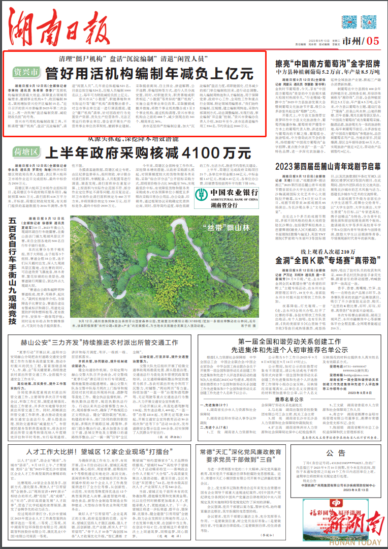 湖南日报9月12日讯(全媒体记者 李秉钧 通讯员 朱孝荣 李李)“发挥机构编制资源最大效益,保障重点领域用编需求,撤销事业机构6个,收回编制20名,调剂增加资兴经开区编制15名。”近日召开的资兴市委编委2023年第二次会议上,再一次吹响“盘活编制资源、减轻财政负担”的号角。